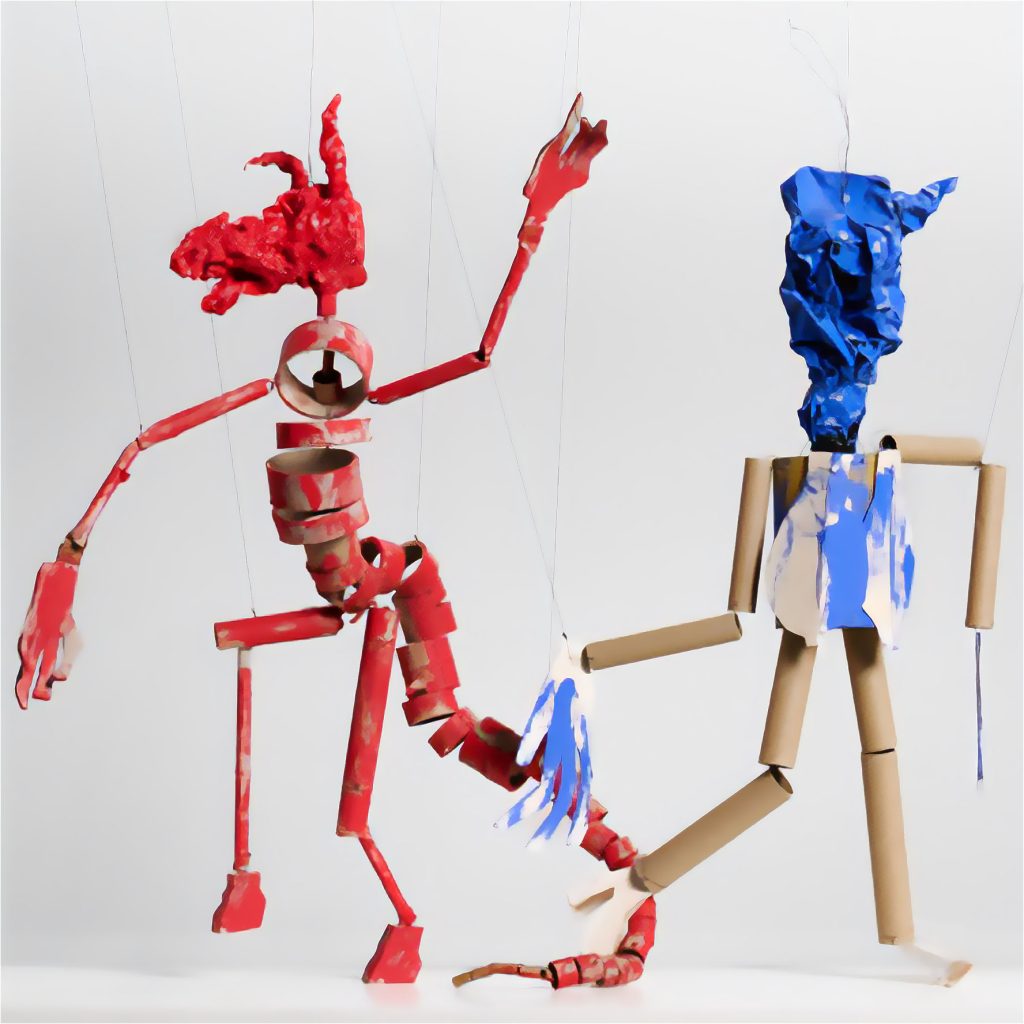 Wenn große Künstler zusammengeführt werden, entsteht Einzigartiges. So geschehen bei den Salzburger Festspielen 2025. Intendant Markus Hinterhäuser und Konzertchef Florian Wiegand ist es in Zusammenarbeit mit der Galerie Ropac gelungen, Georg Baselitz für die Oper „Die Geschichte vom Soldaten“ von Igor Strawinsky zu gewinnen. Er, einer der bedeutendsten Künstler der Gegenwart, hat die Marionetten entworfen und das Bühnenbild gestaltet. Leonard Winkler, der Bildhauer und Figurenbauer des Salzburger Marionettentheaters, hat die Bündel aus weißen Holzstäben mit riesigen Schuhen sowie markanten und farbigen Köpfen angefertigt. Regie führt Matthias Bundschuh, der hin und wieder poetische Schattenspiele zeigt oder eine Stichflamme, manchmal führt er auch die Puppenspieler sichtbar auf die Bühne. Ein weißes Bettlaken mit schwarzen Pinselzeichnungen reicht für das Bühnenbild.